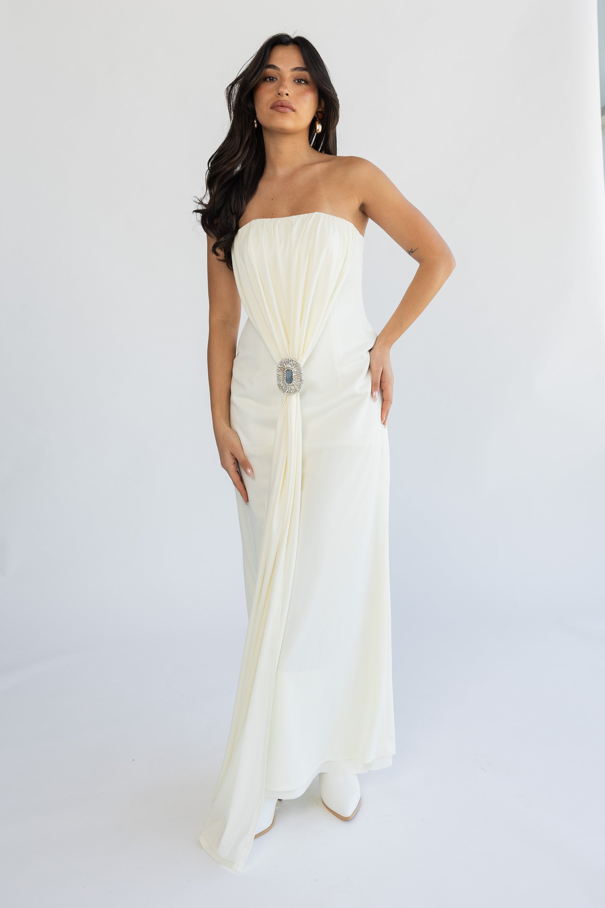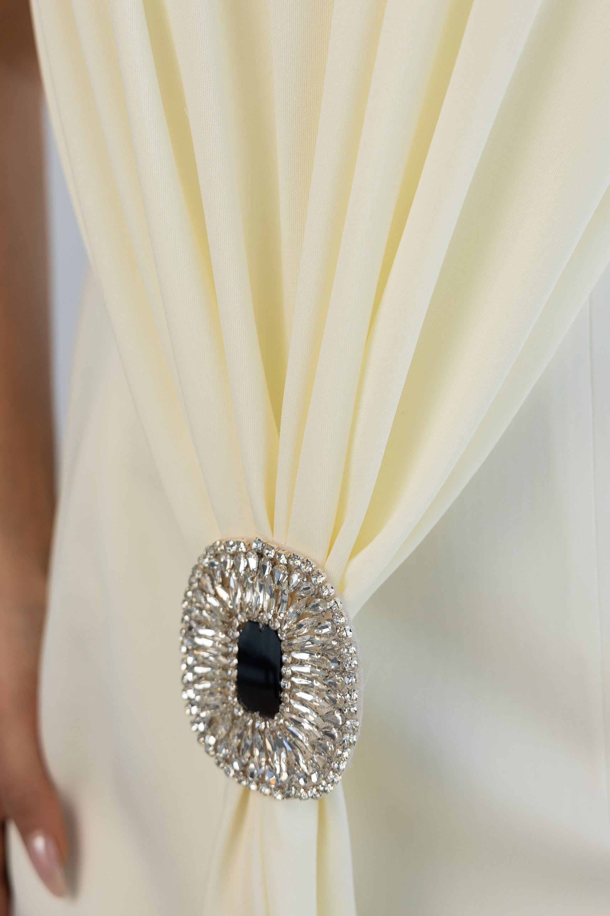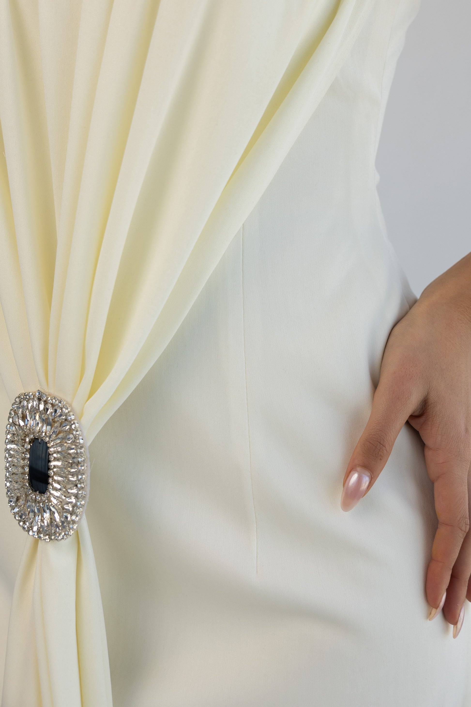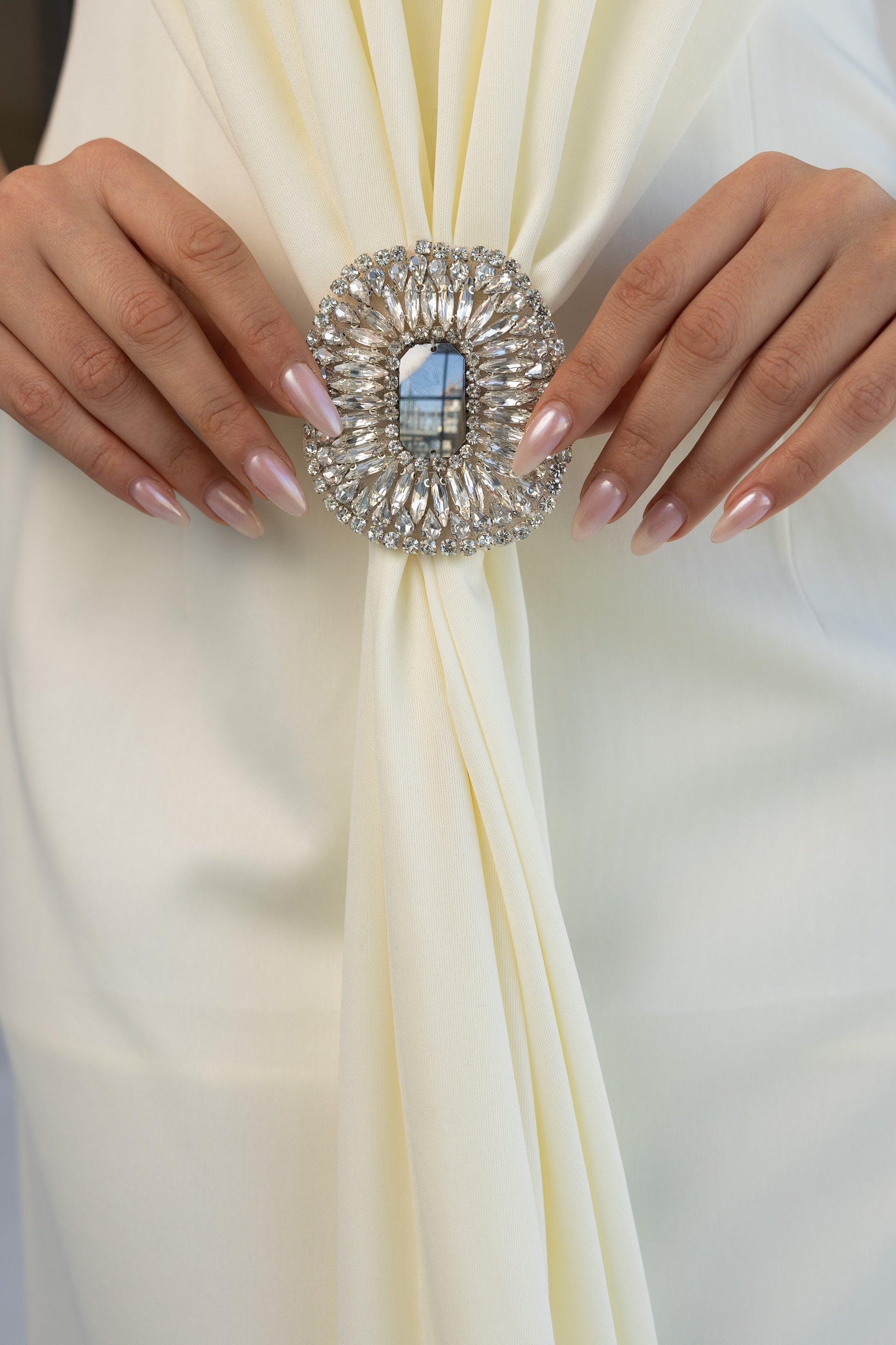 inner dress with handmade brooch.