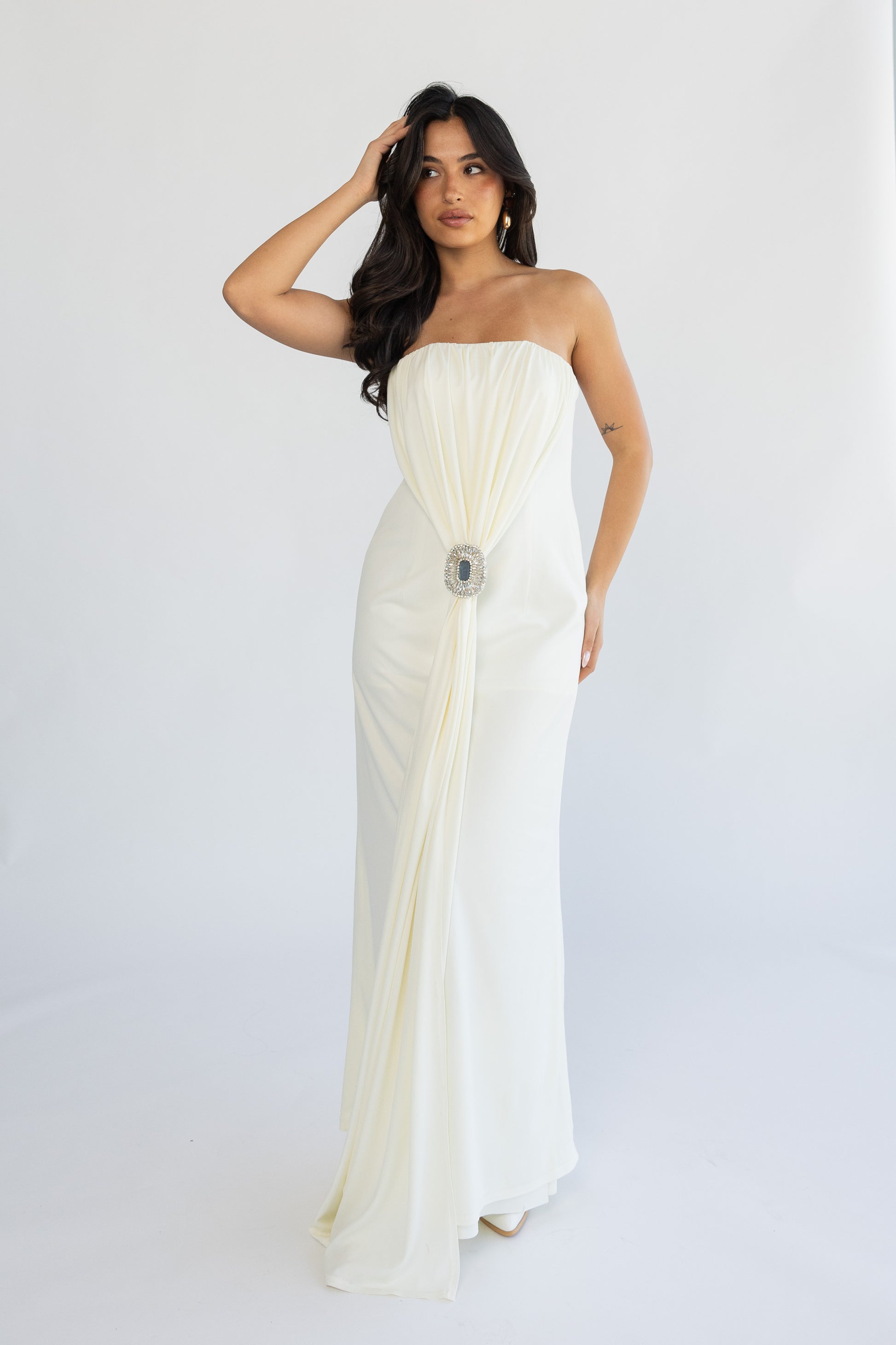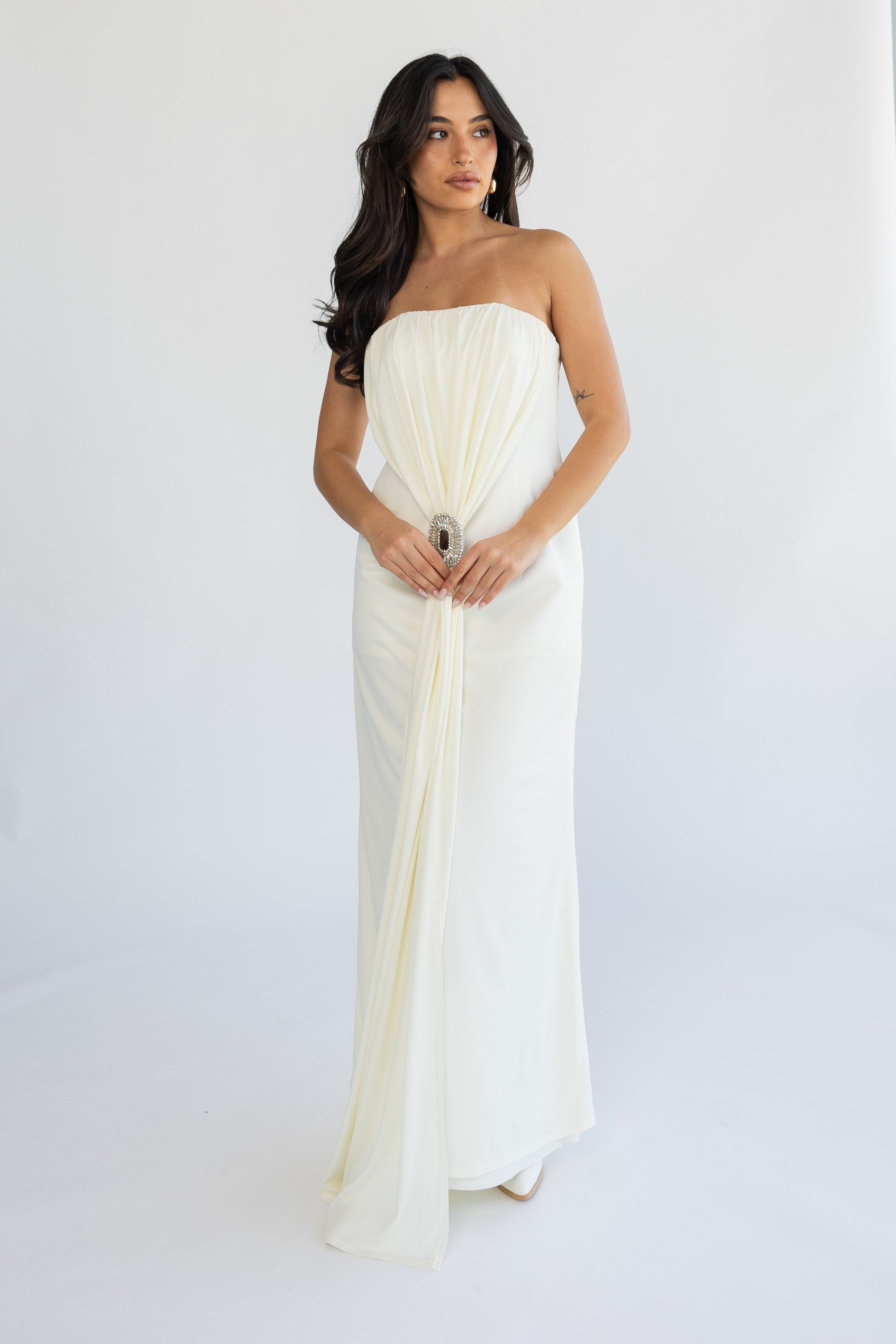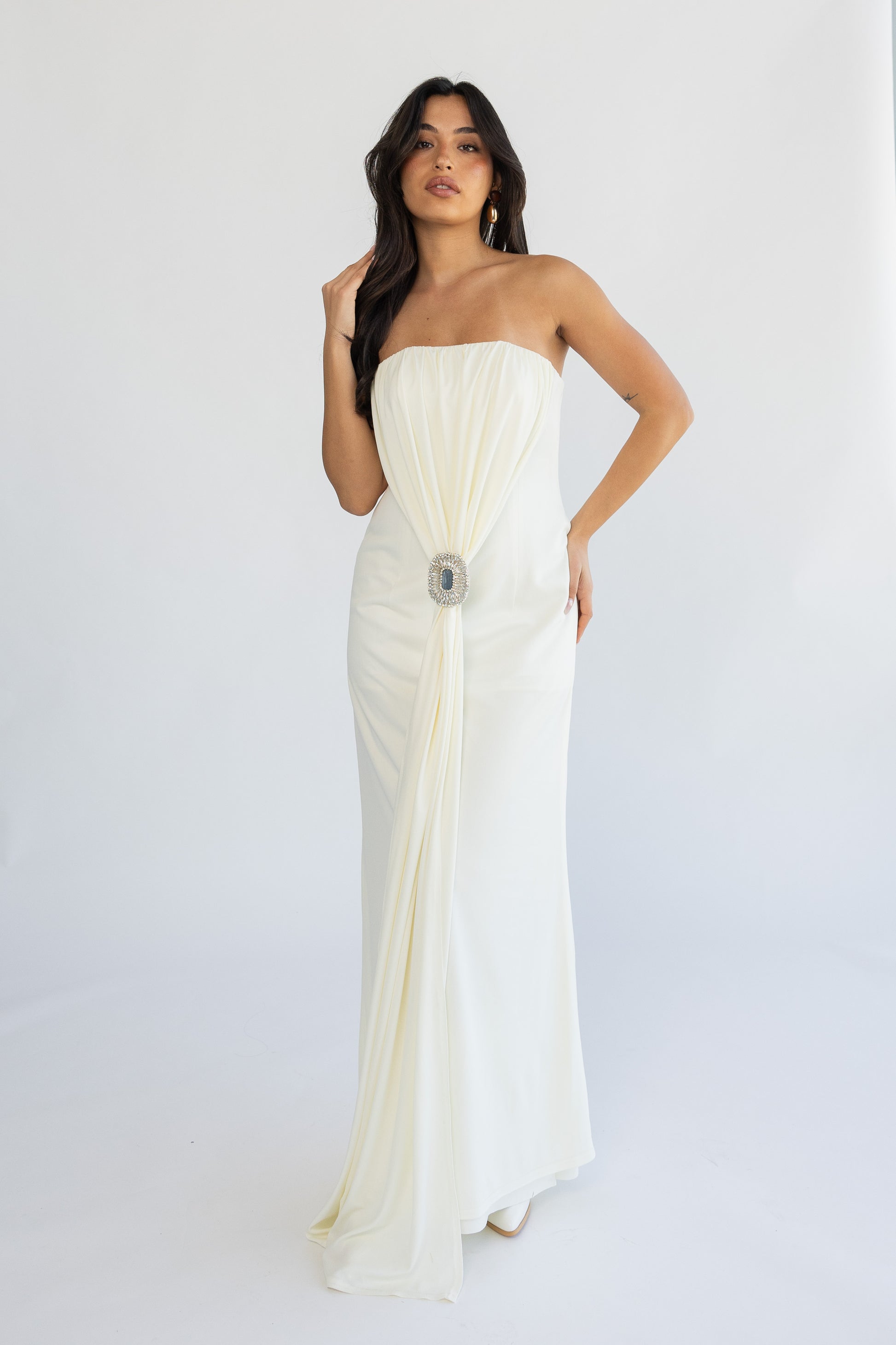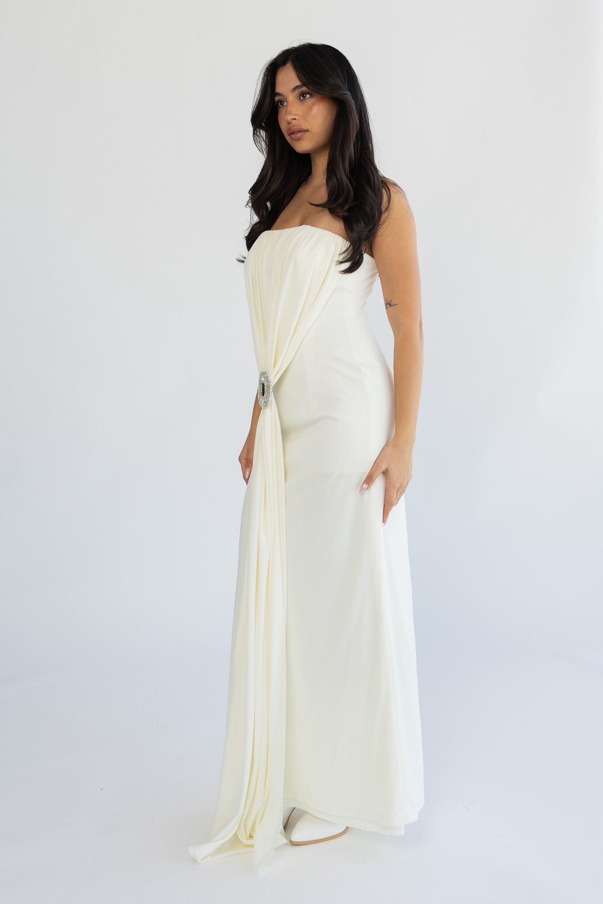 inner dress with handmade brooch.